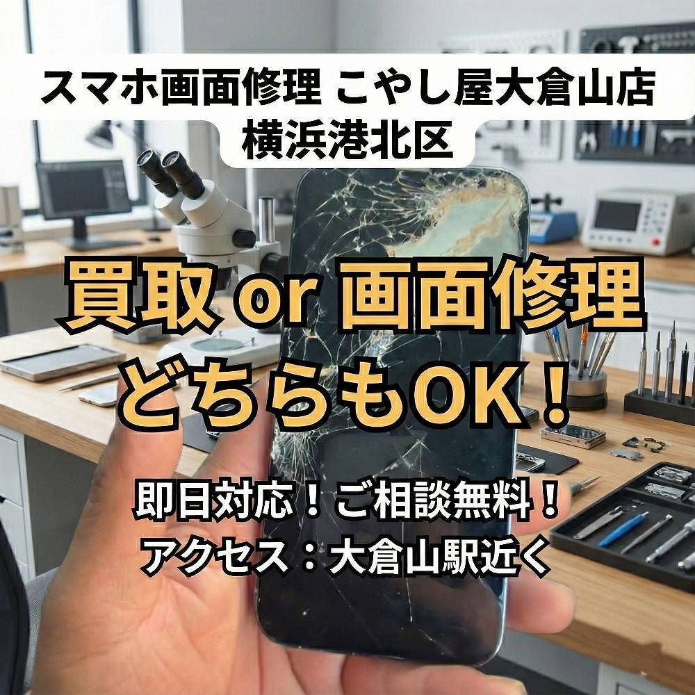 大倉山駅周辺でスマホ修理店をお探しの方へ スマホが壊れたとき、すぐに修理してくれるお店が近くにあると助かります。大倉山駅周辺にお住まいの方、通勤や通学で大倉山駅を利用される方に朗報です。 大倉山駅から徒歩すぐの場所に、スマホ修理の専門店「こやし屋大倉山店」がございます。駅から近いので、仕事帰りや買い物のついでに立ち寄ることができます。 大倉山エリアでスマホ修理店を選ぶポイント スマホ修理店を選ぶ際には、いくつかのポイントを確認することが大切です。 駅からのアクセスは重要です。修理に出すとき、受け取るとき、最低でも2回はお店に行く必要があります。駅から遠いと、それだけで負担になります。こやし屋大倉山店は大倉山駅から徒歩すぐなので、アクセスの心配はありません。 修理時間も確認しましょう。即日対応できるお店なら、預けてすぐに受け取れます。こやし屋大倉山店では、画面修理やバッテリー交換は最短30分で完了します。 料金体系が明確かどうかも大切です。修理後に追加料金を請求されるトラブルは避けたいものです。こやし屋大倉山店では、作業前に必ずお見積りをお伝えし、